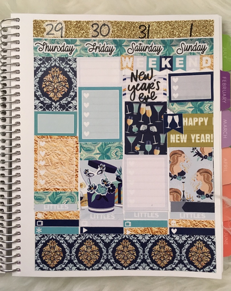 The only few things that were not a part of this kit was the gold washi tape on top, the date covers and the numbers for the dates.